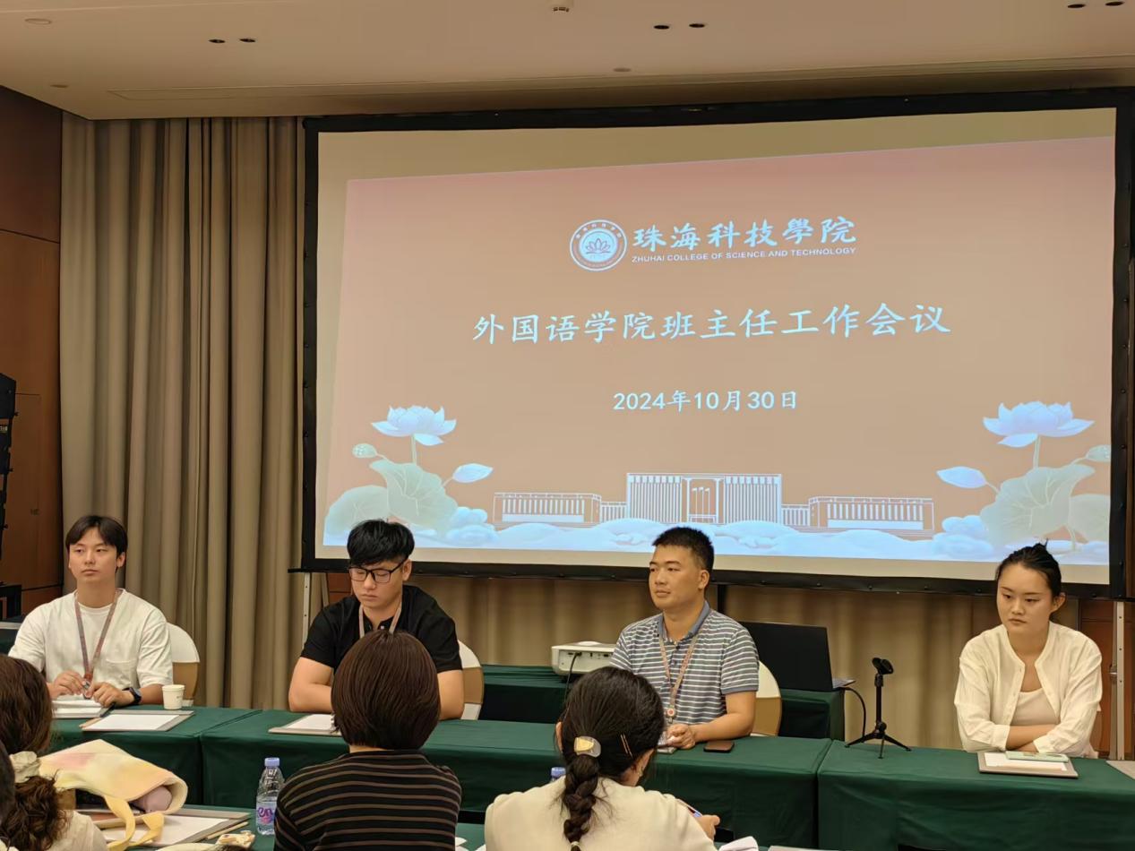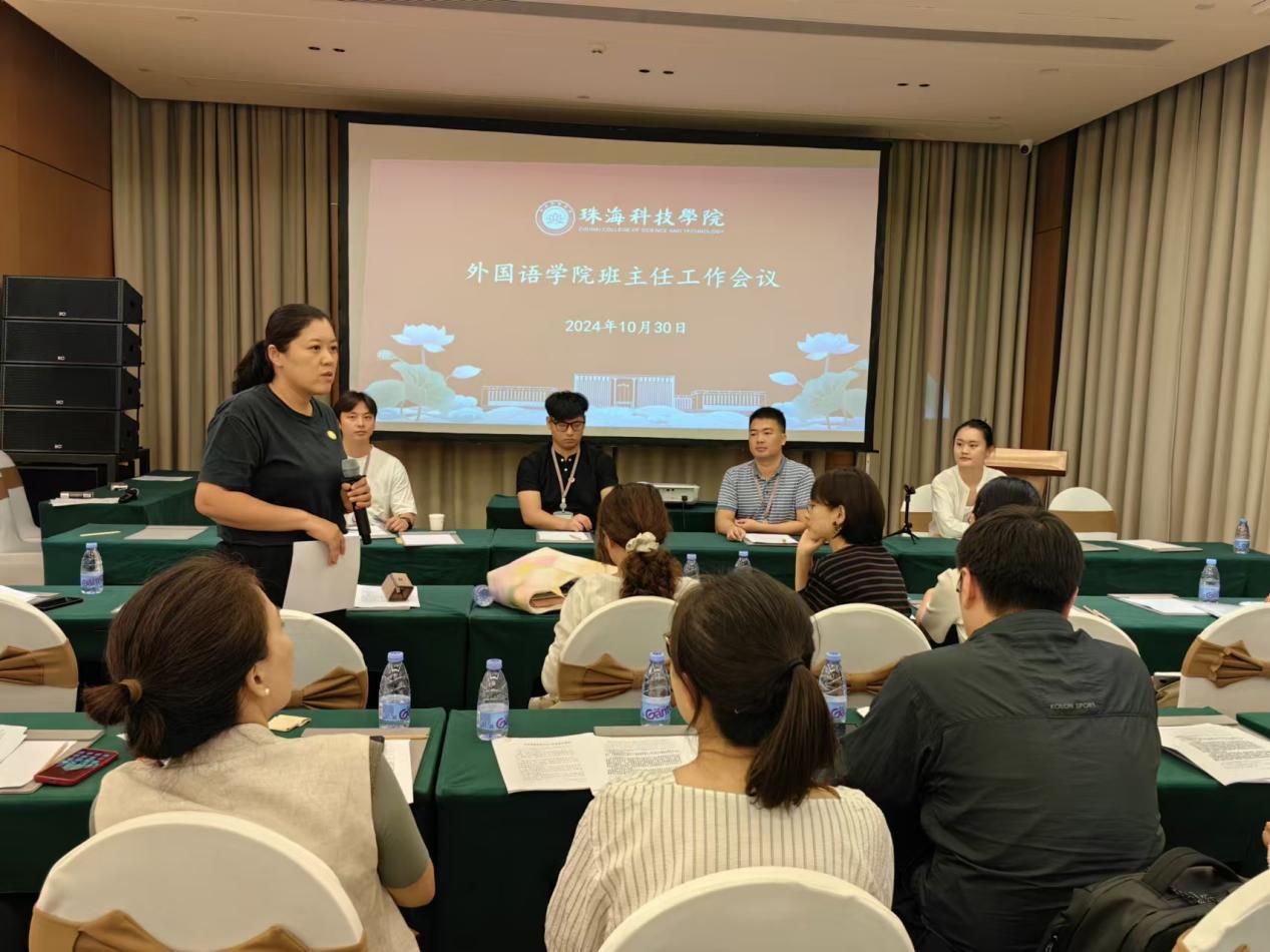 为了明确新学期学院德育工作方向,进一步加强班主任队伍建设,充分发挥班主任在学校人才培养和教育教学中的骨干力量。外国语学院于10月30日在珠海科技学院永乐半山酒店,举行2024-2025年度班主任工作会议。外国语学院院长王晶、学工办主任黎达超、各班主任、各年级辅导员参与本次会议。