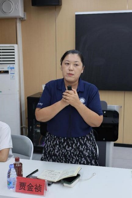 商务英语系主任贾金祯老师结合广东外贸大省优势,为新生分析专业前景,称商英学习“有结果” ,要以专业为敲门砖积累实战能力,还以学姐为例鼓励学习。她介绍课程体系,涵盖跨境电商等,由经贸学院与外院优秀教师授课,和职业发展紧密相关。并给出三点学习建议:严格自律,做好自我管理;注重笔记整理复盘,按理解梳理思维导图;主动实践,抓住口语机会,为未来职场表现奠基 。