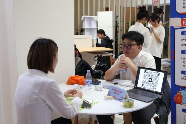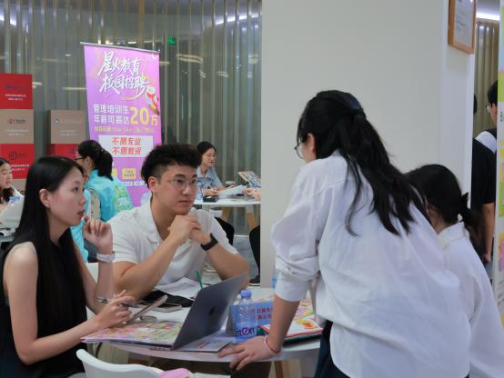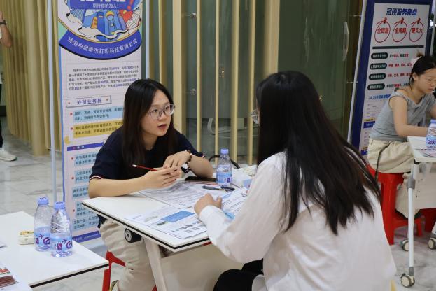 本次招聘会吸引45家企业参加,行业涵盖教育、制造、跨境电商等多个行业领域。招聘会现场人头攒动,企业代表热情地向毕业生们介绍企业基础信息,毕业生们手持精心准备的简历,认真咨询岗位细节,氛围热烈而有序。