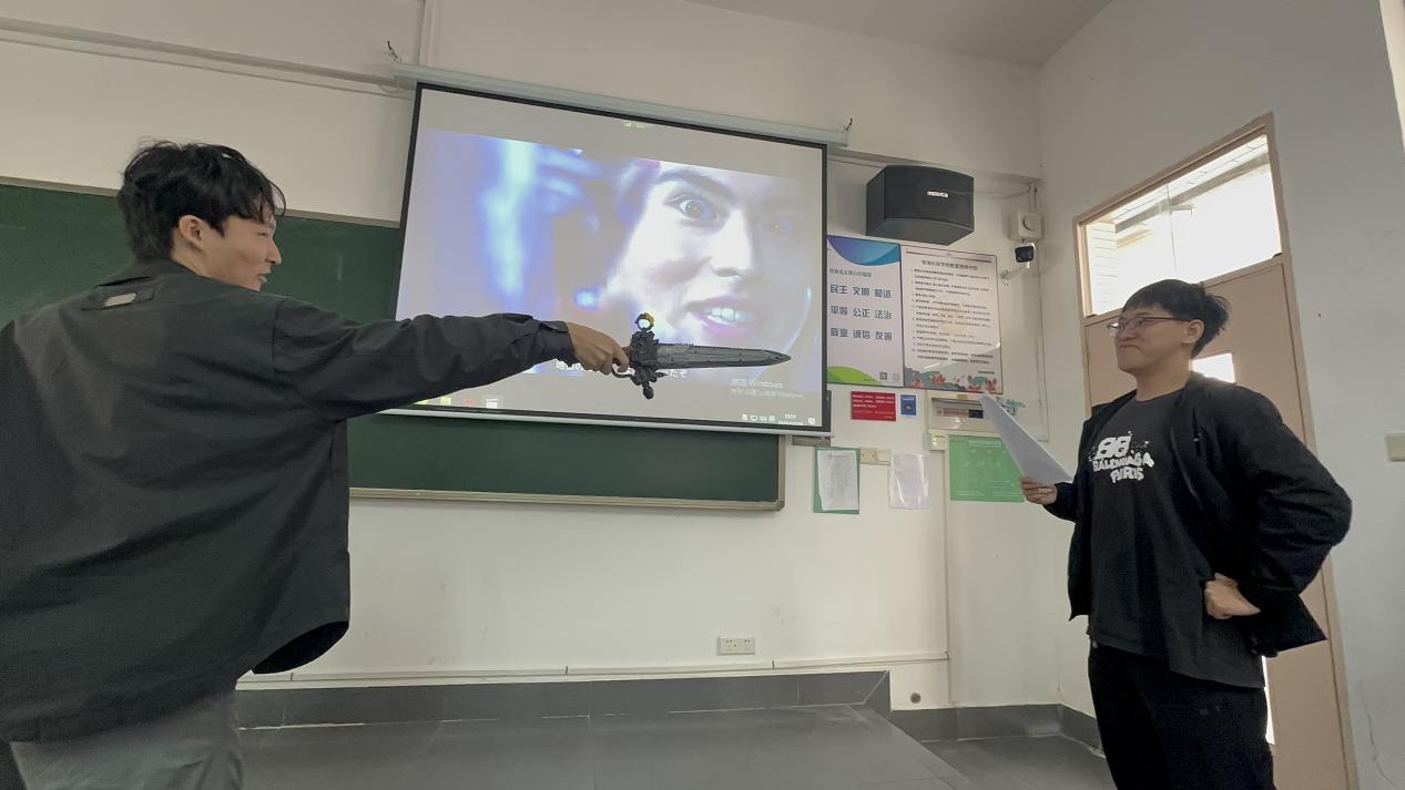 大赛由刘玲、邵春子、王曼、筱原康人等四位教师担任评委,邹铭浩、潘悦、付翠嘉、杨明雨四位同学共同主持。比赛现场气氛热烈,各组选手依次登台,凭借精准的语音语调控制和富有感染力的舞台表现,对《王様戦隊キングオージャー》《蜡笔小新》《孤独摇滚》等经典作品的片段进行了精彩演绎,展现了扎实的语言功底与出色的团队协作能力。