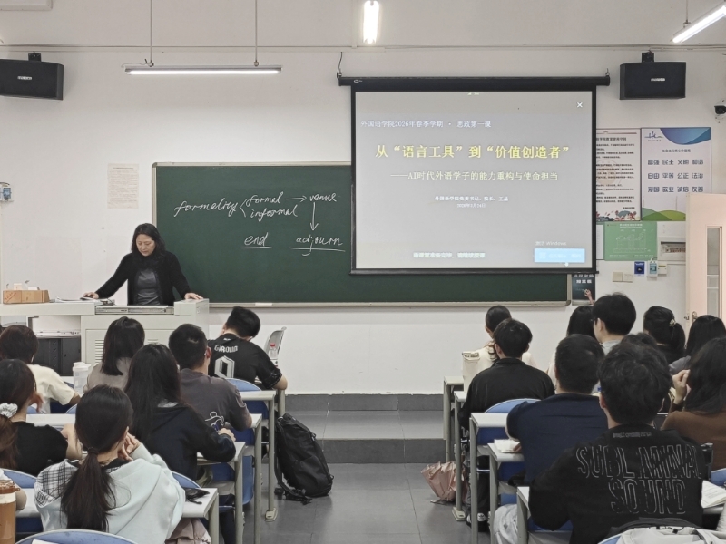 为深入学习贯彻党的二十大精神,落实立德树人根本任务,引导青年学子在AI时代找准定位、明确使命,3月24日,我院党委书记、院长王晶以“从‘语言工具’到‘价值创造者’——AI时代外语学子的能力重构与使命担当”为题,为外语专业学生讲授了一堂生动深刻的思政第一课。王晶教授在讲课中指出,当前人工智能技术飞速发展,深刻改变了教与学的底层逻辑,也对高等教育人才培养提出了新的挑战与要求。面对时代变革,外语学子必须打破传统...